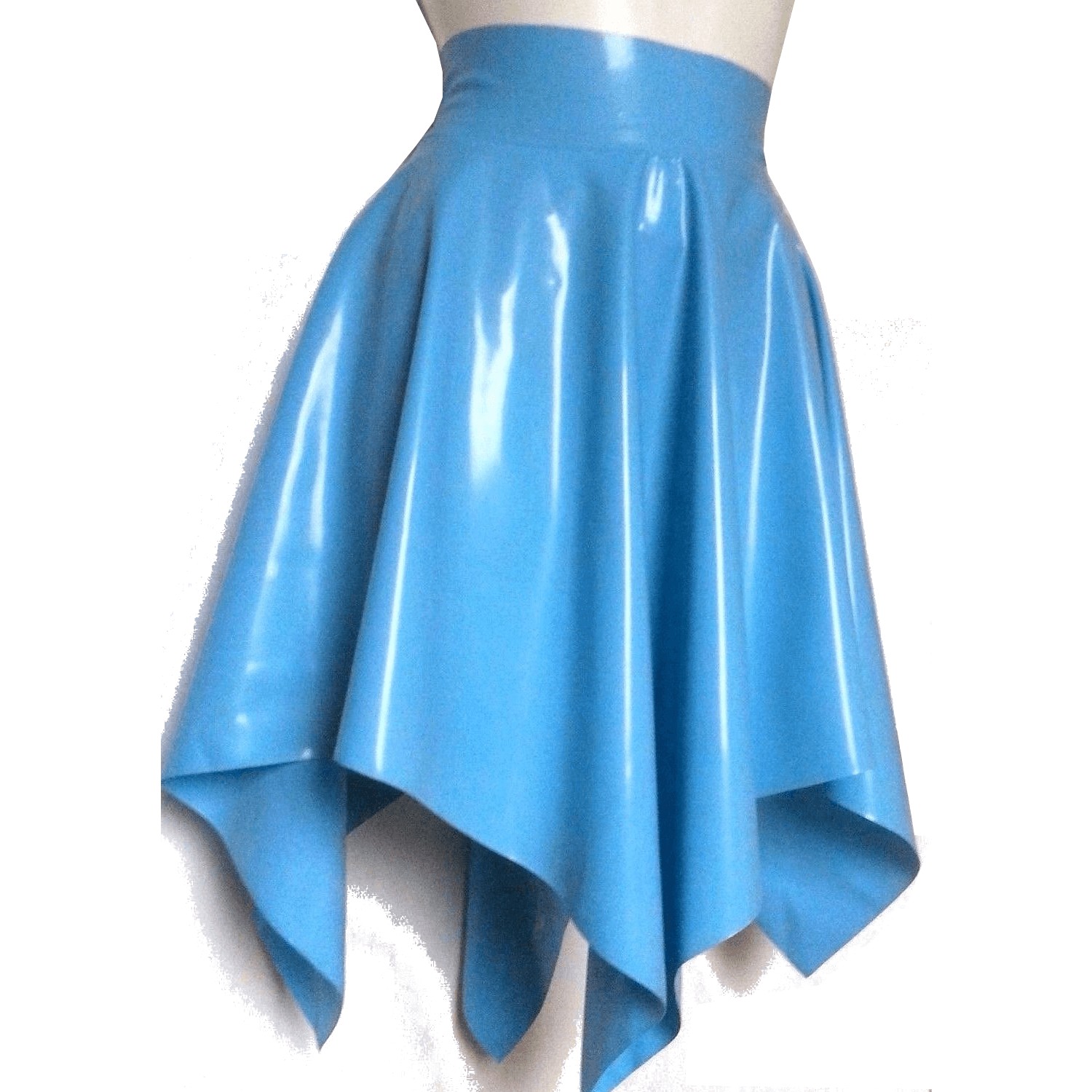 Latex mini skater skirt. Necessary addition to any latex wardrobe. This latex skirt is a full circle skirt with four corners hanging at the bottom.